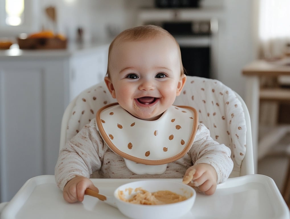 Your baby can sit upright in a highchair or seat with stability, which is crucial for safe swallowing.